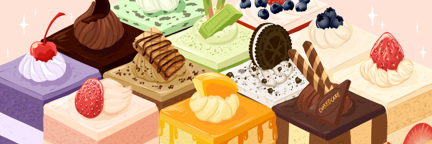 Foods: Cake, Cream puffs, Cookies and cream-flavored, Asian Cuisine